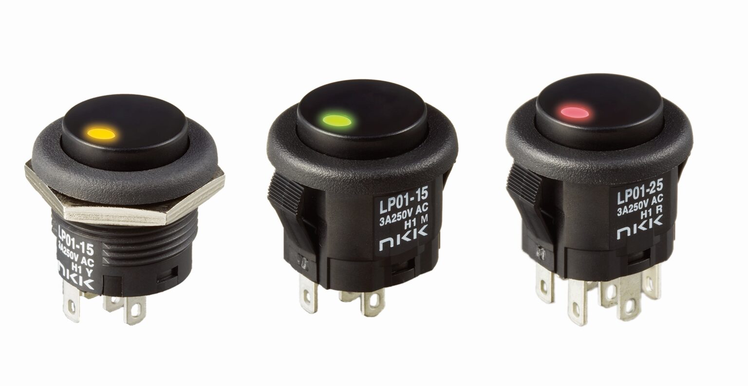 Die Drucktaster der Serie LP01 des japanischen Herstellers NKK Switches erfüllen mit ihren punktförmigen LED-Elementen exakt die Anforderung, die viele Gerätehersteller an die Zustandskontrolle haben. Die Taster können mit LEDs in den Farben Rot, Orange oder Grün geordert werden. Sollte die Beleuchtung keine Rolle für Ihre Anwendung spielen, können Sie die LP01-Taster auch ohne LED-Unterstützung erhalten.
