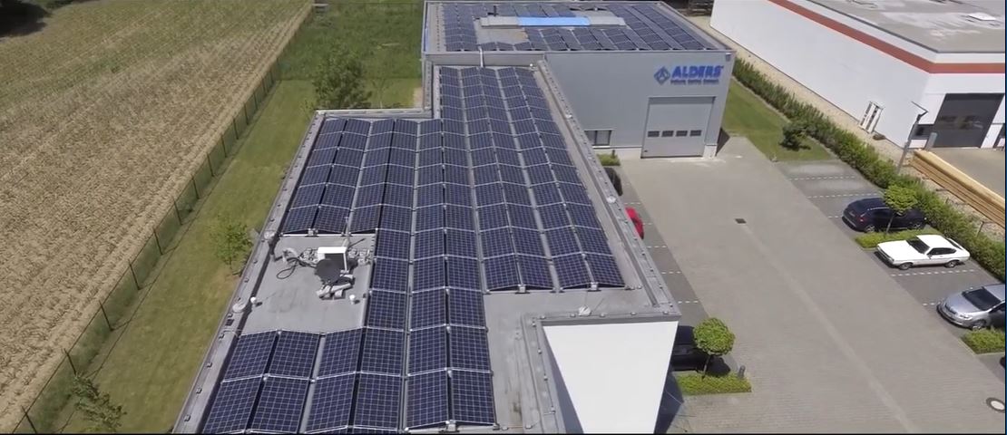 Über die 226 Solarmodule auf den 600 Quadratmeter großen Flachdächern hat die Anlage eine Leistung von 63,28 Kilo-Watt Peak (kWp) . „Damit sind wir am Tage fast in der Lage, autark zu wirtschaften“, so Alders. Der Betrieb ist also nahezu unabhängig vom Strombezug. Lediglich nachts und an düsteren Tagen bezieht ALDERS vom lokalen Energieversorger den Strom.
