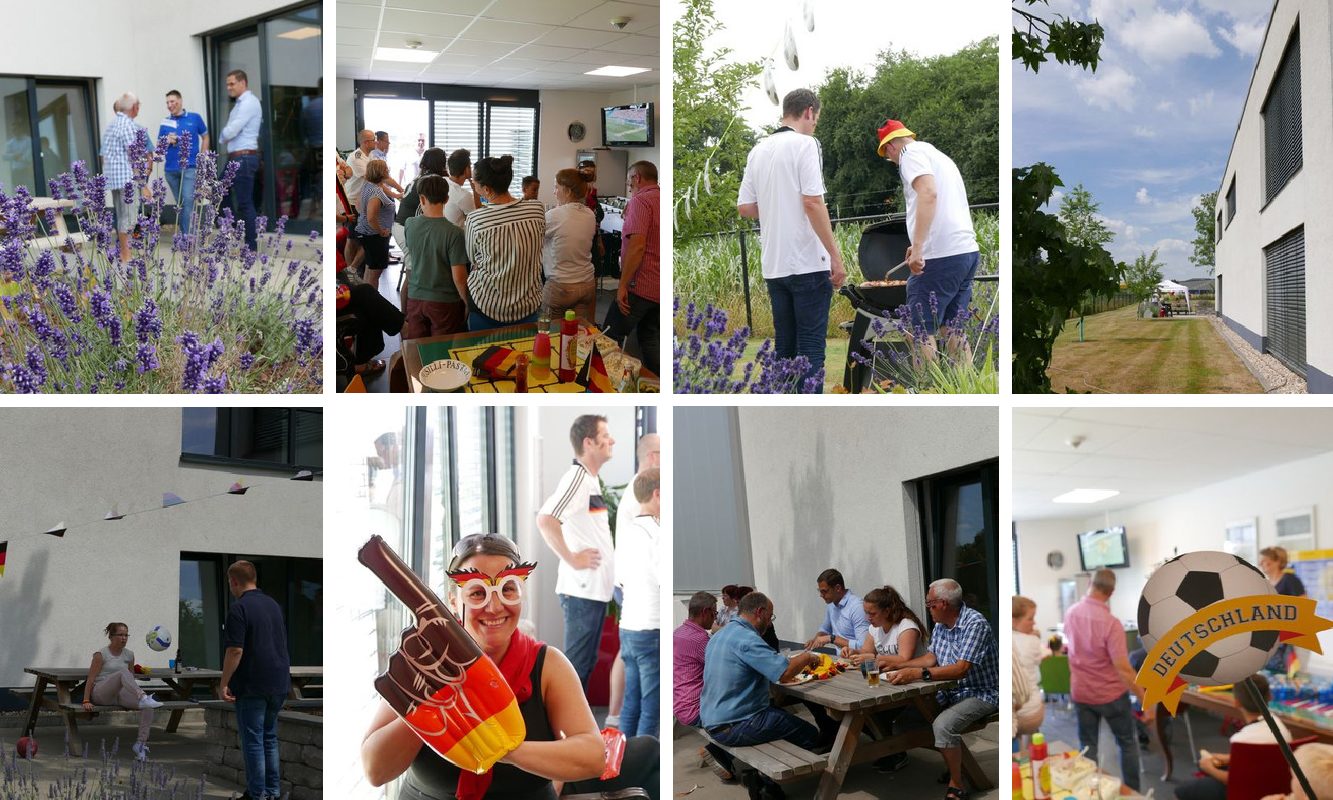 Schon am frühen Nachmittag können sich die ALDERS Mitarbeiter und ihre Familien auf die ersten Würstchen am Kempener Firmenstandort freuen. Mit Fußballgirlanden, Luftballons und Luftschlangen wird die Terrasse geschmückt – schließlich ist Fußball-WM. Auf der Wiese stehen Fußballtore für die kleinen Kicker bereit. Die sind auch nur kurzzeitig ungenutzt als Grillmeister Martin Alders die ersten fertigen Würstchen & Co. anbietet. Dazu gibt es leckere Salate, Baguettes und Dips. Um 16.00 Uhr ist der Grill erst einmal vergessen, der Fernseher wird Star des Tages – alle Augen sind auf den Bildschirm gerichtet. Leider klappt es diesmal nicht, die 2:0 Niederlage gegen Südkorea und das damit verbundene Aus schon in der Vorrunde dieser Weltmeisterschaft dämpft die Stimmung – aber nur kurzzeitig.